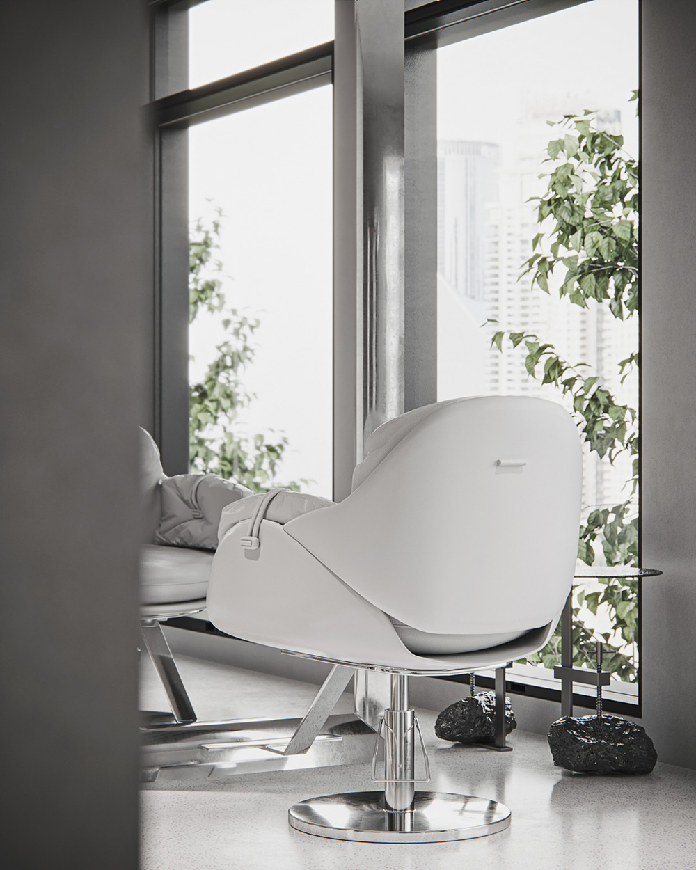 整體設計以大面積白色為主,設計凸顯了原始材料的價值,使其成為個性化的表達,傳遞出事物沒有高低貴賤之分的美好價值觀。要創(chuàng)造出一種非凡獨特的體驗。當客戶光臨的時候,一個極簡的空間內(nèi)所有的焦點應該在理發(fā)師以及他們所駐足的位置上。